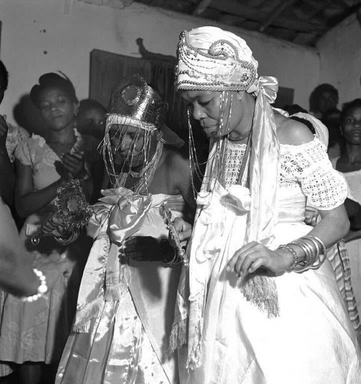 Since I was little I was in contact with Candomblé, which originated in Salvador with the arrival of West and Central Africans. In recent years, I’ve been deepening my spirituality in this practice. The language of the Orixás, the deities and spirits, are very powerful to me. I love how the French photographer Pierre Verger portrayed brazilian Candomblé in these images, he was one of the best to represent the striking beauty created in these rituals.