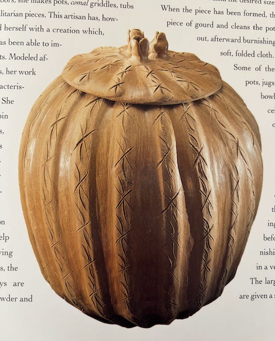 I keep thinking about this vase, about what she destroyed that day. At some point the story couldn’t progress until I was able to see it whole, to bring this object back to life. It was stronger than me. I remember turning to my bookshelf and looking at the titles to see if anything jumped out at me. Without giving it much thought I reached for a Mexican folk art book I offered my husband a few years ago on his birthday.
