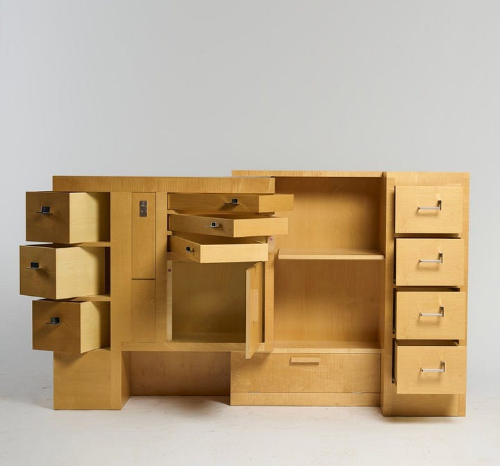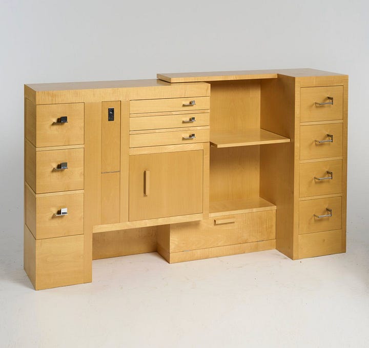 Eileen Gray Sideboard, estimated 20,000€ - 30,000€, on Tuesday March 25. If you can afford it, do it, it won’t come around often on auction; it’s on sale on 1stDibs for 149,999€.