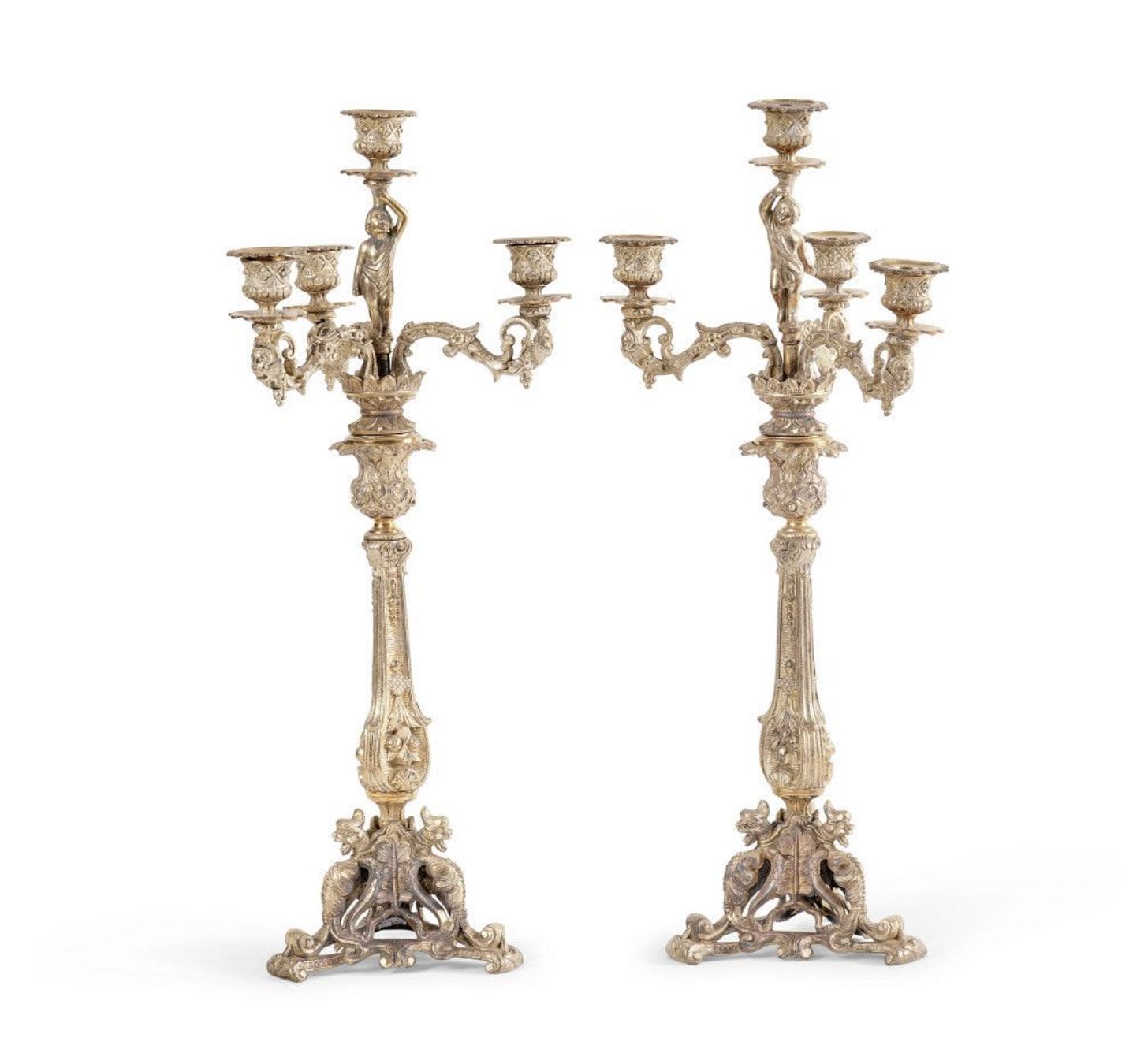 Golden Metal Candlesticks, est. 180€ - 225€ on Wednesday, April 16, available at Aste Bolaffi.