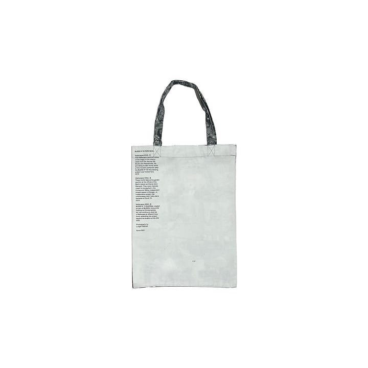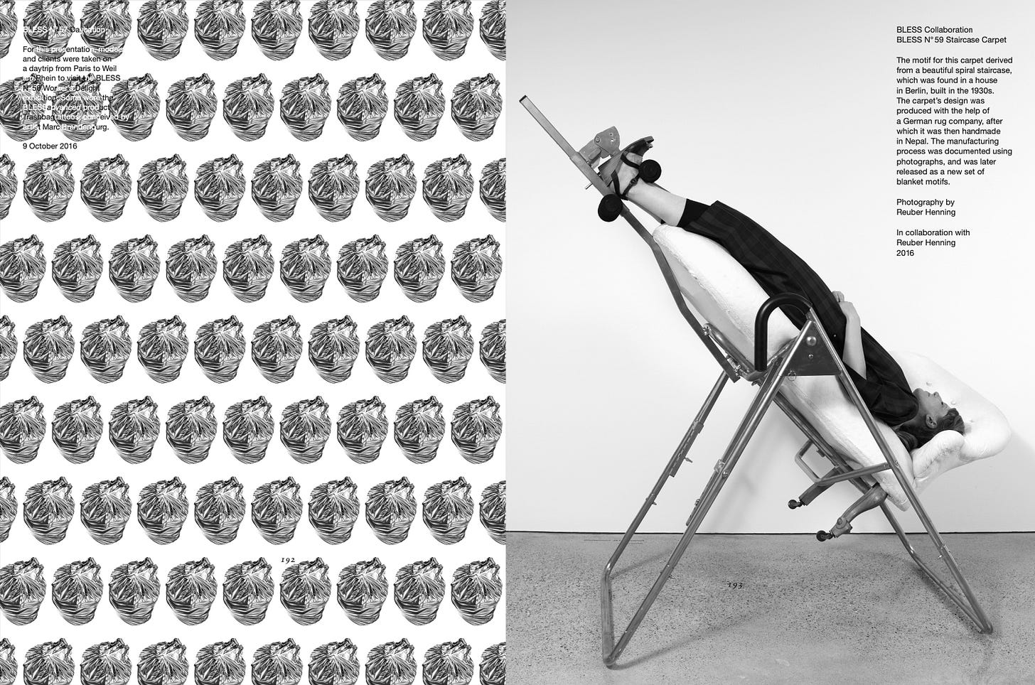 All the images featured in this interview are extracts from the book Celebrating 25 Years of Always Stress with BLESS N°42-N°74, which was also produced as a limited edition series of tote bags featuring its contents (see below). One bag corresponds to one page (front and back), and there is one bag available for each of the book’s 200 double-spreads.